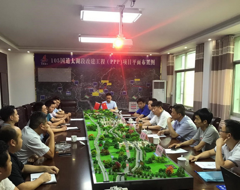 會(huì )上,許總一行通過(guò)觀(guān)看國道航拍視頻和聽(tīng)取工作匯報的形式對105國道改建項目進(jìn)行了深層次的了解。相關(guān)領(lǐng)導對太湖105國道改建工程PPP項目當前取得的工作成績(jì)予以高度認可,希望全體參建人員繼續努力,共同將集團在安慶地區的首個(gè)PPP項目打造成為安徽建工品牌工程。許克順強調:一要加強溝通,全力推進(jìn)項目進(jìn)度。項目公司要緊密配合政府方,加強溝通協(xié)作,推進(jìn)項目征地拆遷進(jìn)程,為工程全面實(shí)施和實(shí)現既定工程責任目標提供保障;二要優(yōu)化管理,著(zhù)力防控投資風(fēng)險。從優(yōu)化組織管理和施工管理方面入手,加快施工進(jìn)度,爭取早日運營(yíng),確保投資收益;三要抓好黨建,持續抓好黨風(fēng)廉政建設。要嚴明紀律、恪守規矩,時(shí)刻繃緊政治紀律和政治規矩這根弦,嚴格遵守黨章和黨內政治生活準則,不斷增強政治警覺(jué)性和政治鑒別力,扎實(shí)開(kāi)展好“講忠誠、嚴紀律、立政德”專(zhuān)題警示教育活動(dòng),以魯煒案和徽商集團窩案等嚴重違紀行為為戒,引導黨員干部和全體職工牢記黨的宗旨,筑牢思想政治道德防線(xiàn),提高拒腐防變的能力。