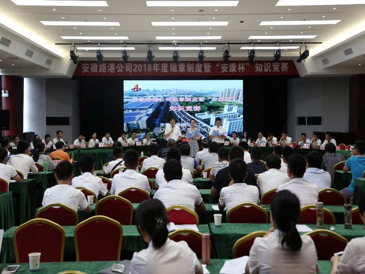 6月26日下午,安徽路港公司2018年度規章制度暨“安康杯”知識競賽在安建大廈3樓會(huì )議室舉行,共有來(lái)自公司機關(guān)、司屬各單位的25支參賽隊伍、75名選手參加比賽,集團公司工會(huì )副主席、職工監事吳曉伍,安徽路港公司董事長(cháng)、總經(jīng)理李振標,副總經(jīng)理袁民出席活動(dòng)。