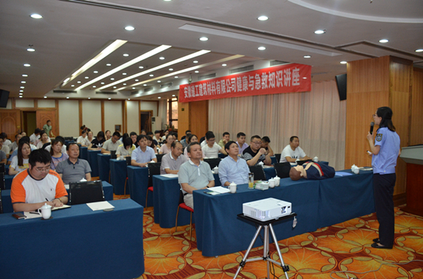 6月4日,安建建材誠邀中國安全健康教育中心安徽站特邀講師張楠為廣大職工作了健康與急救知識培訓講座,講座內容包括心肺復蘇的重要性和實(shí)施方法、關(guān)于本行業(yè)本單位易發(fā)多發(fā)職業(yè)病的自檢、預防和緩解的方法、以及“三減三健”的健康生活方式。本次講座使得員工們學(xué)到了專(zhuān)業(yè)的現場(chǎng)急救知識,提高了突發(fā)事件應急處理能力。同時(shí)也引發(fā)了大家對職業(yè)病和健康的高度關(guān)注。