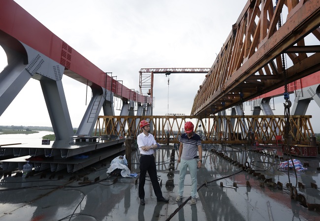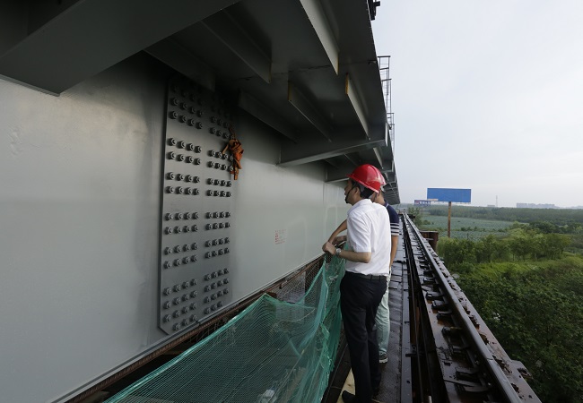 隨后,在項目負責人的陪同下,盛董事長(cháng)登上中派河大橋,查看大橋建設情況。項目負責人匯報了中派河大橋當前工程進(jìn)度、質(zhì)量、安全管理、技術(shù)創(chuàng )新以及下一階段工作計劃。在聽(tīng)取匯報后,盛董事長(cháng)表示,中派河大橋使用了大量新工藝、新技術(shù)、新材料,社會(huì )影響力大,各界關(guān)注度高,項目部一定要緊抓質(zhì)量、安全不放松,同時(shí)注重技術(shù)創(chuàng )新、經(jīng)驗總結、綠色環(huán)保,把中派河大橋打造成為行業(yè)內的精品工程,內強素質(zhì)、外樹(shù)品牌,為路橋集團增光添彩。