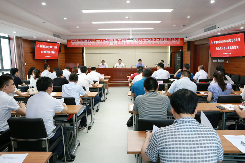 為全面加強宣傳思想文化工作,落實(shí)意識形態(tài)工作責任,8月17日,安建投資公司召開(kāi)2018年宣傳工作會(huì )議暨公文寫(xiě)作與通訊員培訓班。公司領(lǐng)導班子成員余志剛、黃國平、朱友良、謝洪兵出席會(huì )議,公司機關(guān)全體職工、所屬各項目公司負責人、綜合部負責人及全體通訊員近60人參加會(huì )議。