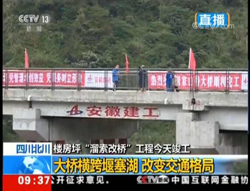 9月1日,由安徽路港承建的北川縣唐家山堰塞湖跨湖大橋項目全部完工,中央電視臺《新聞直播間》《東方時(shí)空》等核心新聞欄目先后予以報道。