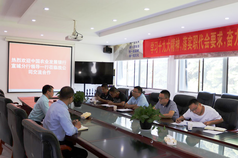 9月4日下午,中國農業(yè)發(fā)展銀行宣城分行政策性業(yè)務(wù)部高管袁靖、涇縣支行行長(cháng)黃垚一行親臨涇縣安建基礎設施投資有限公司洽談生態(tài)文明提升PPP項目融資事宜。項目公司負責人程正旺、財務(wù)總監甘御東對來(lái)賓一行表示歡迎,并在項目公司會(huì )議室舉行了座談會(huì )。