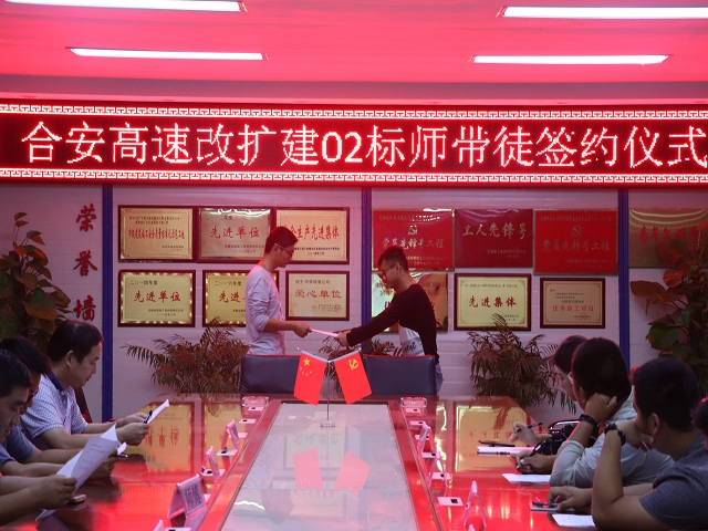 為加強對新員工的技術(shù)、技能培養,有效促進(jìn)青年員工技能提升和快速成才,充分發(fā)揮項目技術(shù)骨干人才的“傳、幫、帶”作用,近日,安徽路港蕪黃高速12標項目部和合安高速改擴建02標項目部分別舉行“師帶徒”協(xié)議簽訂儀式。