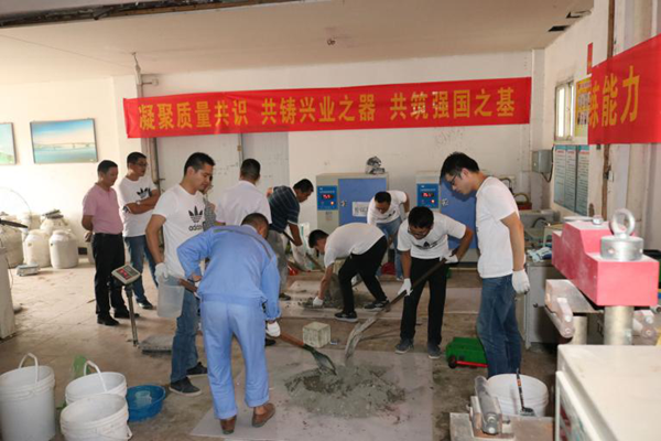 9月20日上午,安建建材“第二屆”混凝土技能大賽火熱開(kāi)賽。此次比賽以“C35大流態(tài)混凝土的配制與性能試驗”為主題,分為筆試和實(shí)操兩個(gè)環(huán)節。通過(guò)考察參賽者混凝土理論知識水平、混凝土拌制與性能試驗操作的規范性和正確性以及混凝土配合比調整的綜合能力,加深員工對混凝土的認識,培養創(chuàng )新精神和團隊意識,提高質(zhì)量從業(yè)人員的專(zhuān)業(yè)知識水平和實(shí)操技能。