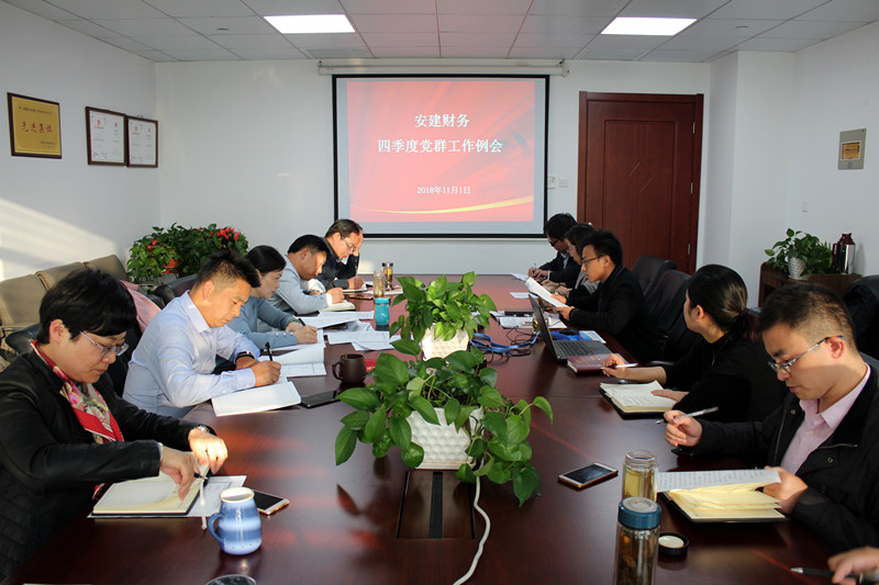 11月1日,安建財務(wù)公司黨總支召開(kāi)四季度黨群工作例會(huì ),公司黨總支書(shū)記、副總經(jīng)理潘琳主持會(huì )議。副總經(jīng)理、紀檢委員于忠山,公司黨群部門(mén),所屬各黨支部書(shū)記、支部委員及工會(huì )人員參加了會(huì )議。