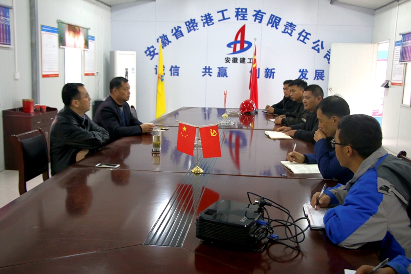 近日,安徽路港公司黨委副書(shū)記、總經(jīng)理葉明林赴六安市龍河路橋和長(cháng)安北路橋項目部檢查指導工作,公司副總經(jīng)理、總工程師張瓊和第三分公司負責人陪同。