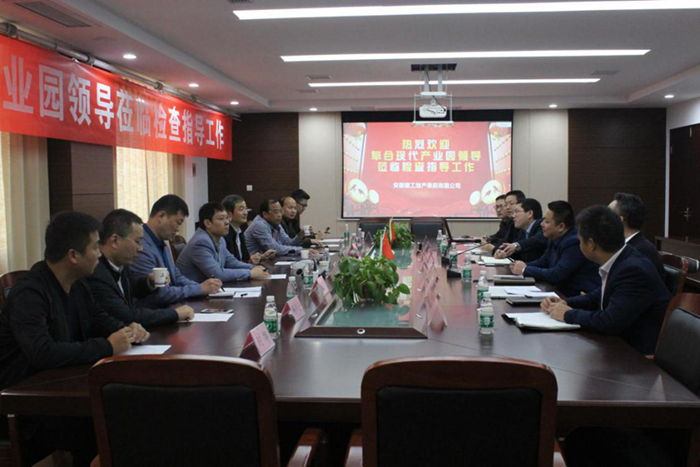 近日,阜陽(yáng)合肥現代產(chǎn)業(yè)園黨工委副書(shū)記、管委會(huì )副主任李向陽(yáng)、黨工委委員、管委會(huì )副主任陸水松以及園區內規建局、行政執法局、投資公司一行蒞臨安建地產(chǎn)阜陽(yáng)公司調研指導工作。安建地產(chǎn)黨委委員、副總經(jīng)理王成民,阜陽(yáng)公司黨支部書(shū)記、總經(jīng)理周鑫等陪同。