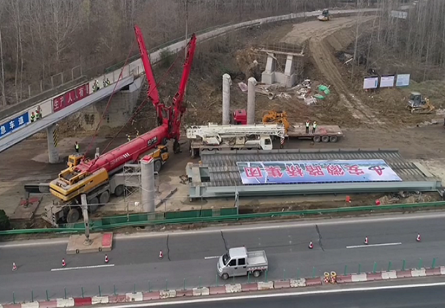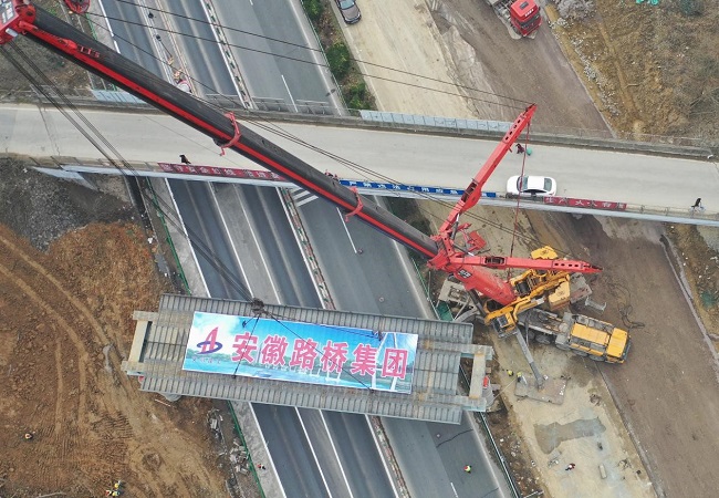 項目部技術(shù)管理人員迎難而上,多次論證,為降低成本減少高速導改次數,徹底消除涉路高空焊接作業(yè)隱患,此次鋼板梁采用了“一鉤清”的地面組拼、整跨吊裝施工方案。根據計算分析,采用大噸位的600t汽車(chē)吊,雙向封閉合安高速20分鐘完成架設,以確保鋼板梁的架設安全,在提高效率的同時(shí)也保證了架設的安全可靠。