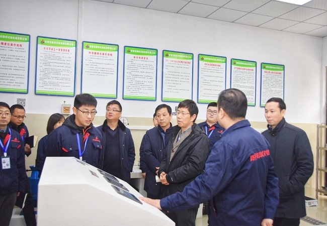 王厚良董事長(cháng)一行分別查看了檢測公司下屬的三十余個(gè)功能試驗室,詳細了解設備儀器的功能、參數及運行情況。在得知檢測公司的儀器設備可通過(guò)掃描二維碼查詢(xún)設備儀器信息后,王厚良董事長(cháng)興致勃勃的拿出手機,親自?huà)叽a查看,對檢測公司的信息化管理能力給予充分認可。