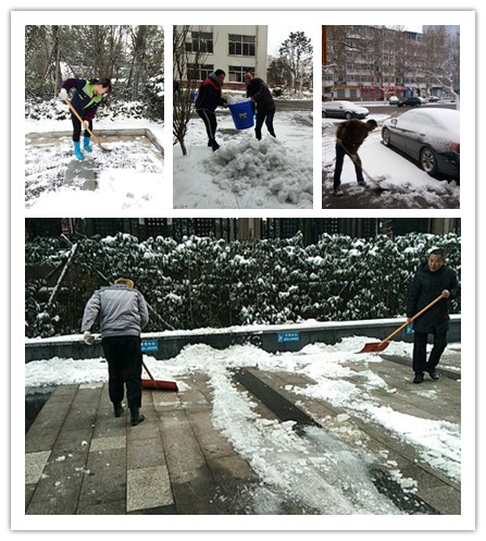 盡管正處于春節放假期間,安建物業(yè)各項目仍高度重視此次降雪危害,做好應急處理。各項目夜班保安加大巡查,深夜出動(dòng),提前在主干道播撒工業(yè)鹽融雪;各項目值班管理人員積極組織并帶頭清理積雪;安建大廈物業(yè)管理處所有人員初六下午提前到崗,合力清除積雪,使得安建大廈主要出入口和車(chē)輛通道暢通無(wú)阻,有效保障第二天各駐廈單位正式上班后的人員及車(chē)輛進(jìn)出安全。