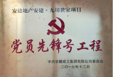2018年4月,安建地產(chǎn)·九坊世家項目喜獲中共安徽建工集團有限公司委員會(huì )授予的“黨員先鋒號工程”榮譽(yù)稱(chēng)號,此項獲獎是對安建地產(chǎn)阜陽(yáng)公司黨支部建設工作的肯定。
