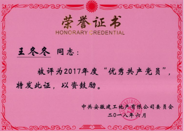 阜陽(yáng)公司榮獲安徽省總工會(huì )頒發(fā)的“安徽省示范點(diǎn)·職工書(shū)屋”榮譽(yù)稱(chēng)號;安徽建工集團有限公司工會(huì )頒發(fā)“工人先鋒號”榮譽(yù)稱(chēng)號;安徽建工集團控股有限公司工會(huì )頒發(fā)“模范職工小家”榮譽(yù)稱(chēng)號。
