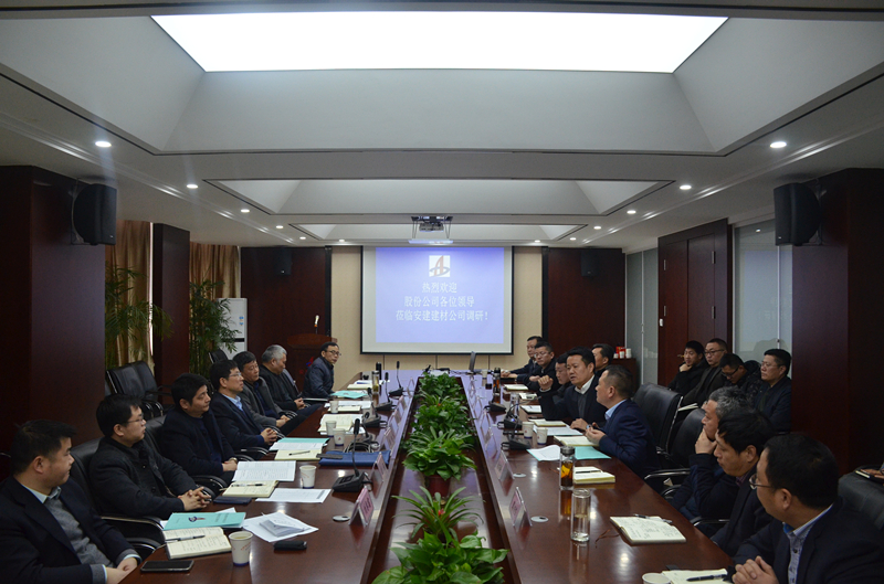 2019年2月26日上午,股份公司董事長(cháng)王厚良一行蒞臨安建建材調研指導工作。股份公司監事會(huì )主席牛曉峰、財務(wù)總監徐亮及相關(guān)部門(mén)負責人陪同調研。公司領(lǐng)導班子及各部門(mén)負責人參加了調研座談會(huì )。