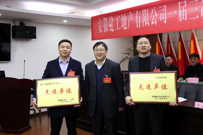 安建地產(chǎn)黨委委員、副總經(jīng)理宋菊紅主持會(huì )議。會(huì )議聽(tīng)取并審議通過(guò)了《總經(jīng)理工作報告》、《財務(wù)工作報告》、《業(yè)務(wù)招待費使用情況報告》、《安徽九華房地產(chǎn)開(kāi)發(fā)有限公司企業(yè)年金方案(實(shí)施細則)》以及《一屆三次職代會(huì )大會(huì )決議》。大會(huì )表彰了2018年度公司先進(jìn)集體和先進(jìn)個(gè)人。會(huì )上,簽訂了《集體合同》、《2019年黨建、經(jīng)濟目標責任書(shū)》。會(huì )議聽(tīng)取了童宗勝同志代表公司領(lǐng)導班子的述職述廉報告,并對公司領(lǐng)導班子進(jìn)行了民主評議。