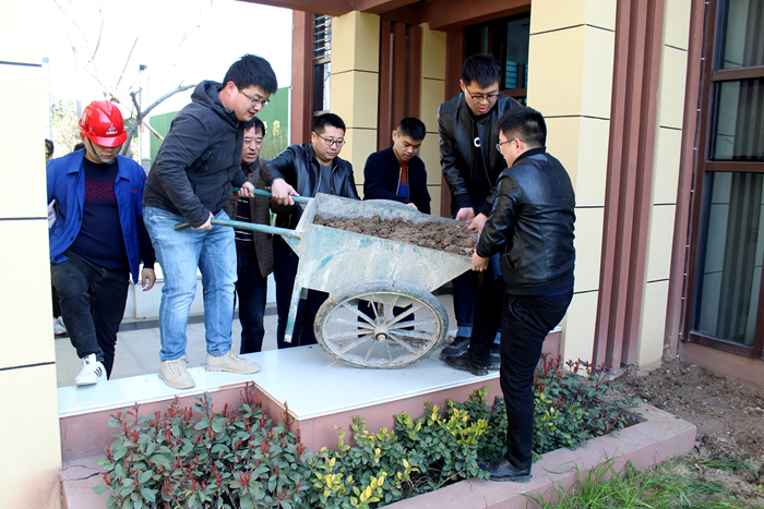 陽(yáng)光明媚,天氣宜人。在聽(tīng)完活動(dòng)總體布置和安排后,大家前往安建地產(chǎn)·漢城源筑營(yíng)銷(xiāo)中心,熱火朝天的干了起來(lái)。推車(chē)運土、鋪平土坯、挖坑放樹(shù)苗、填土踩實(shí),最后澆水灌溉,整個(gè)過(guò)程有條不紊,小心細致。在大家共同辛勤勞動(dòng)下,營(yíng)銷(xiāo)中心外圍裸露的黃土上多了一顆顆小樹(shù)苗,為這明媚的春光又增添了一份綠意,更顯生機勃勃。