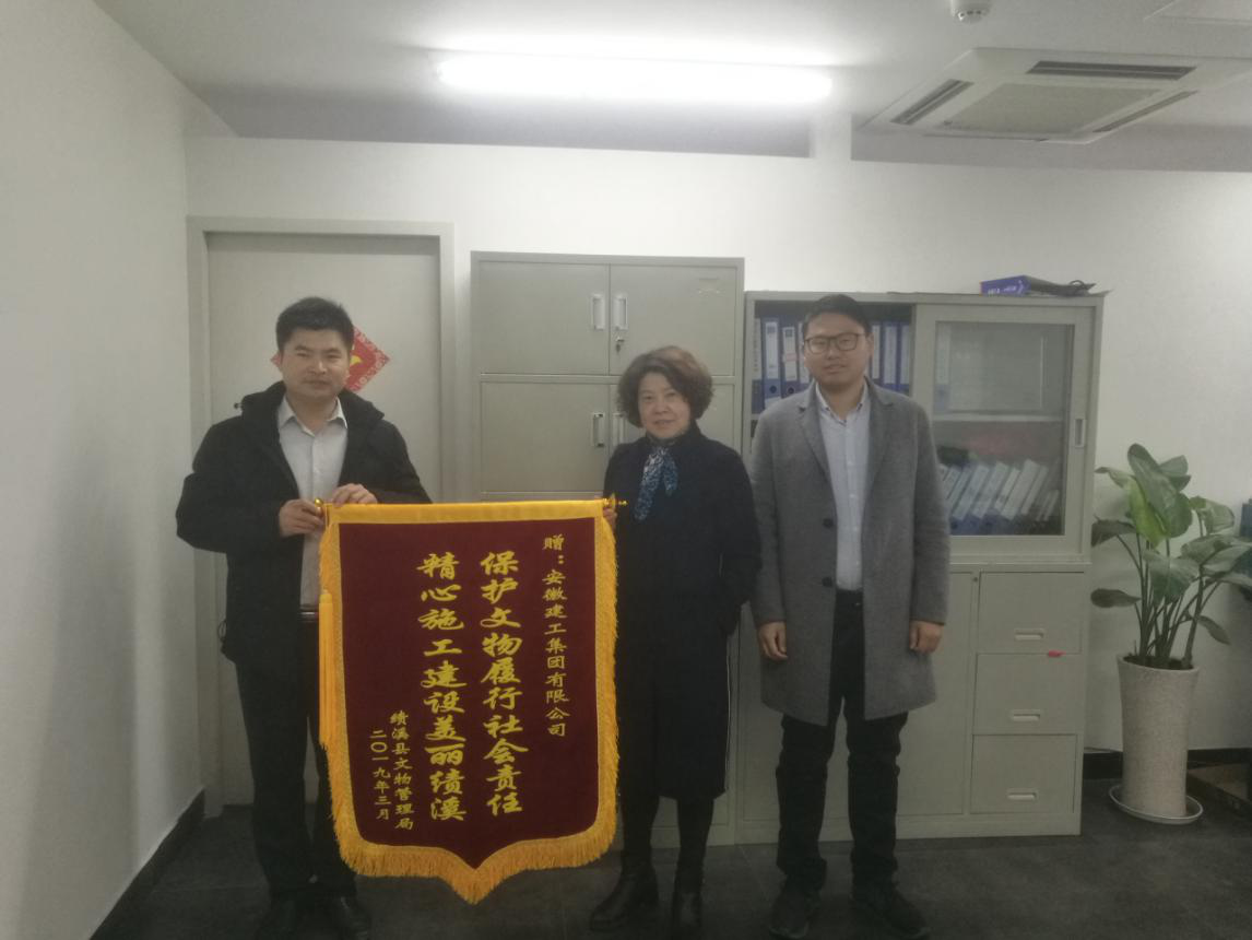 3月22日上午,績(jì)溪縣文物局對安徽建工績(jì)溪縣生態(tài)文明提升基礎設施PPP項目授予錦旗,稱(chēng)贊項目部“保護文物履行社會(huì )責任,精心施工建設美麗績(jì)溪”。此次考古文物挖掘中,項目部措施得當、配合迅速、行動(dòng)高效,得到了縣委縣政府及相關(guān)單位的高度評價(jià),彰顯了安徽建工作為國有上市公司的企業(yè)風(fēng)范。