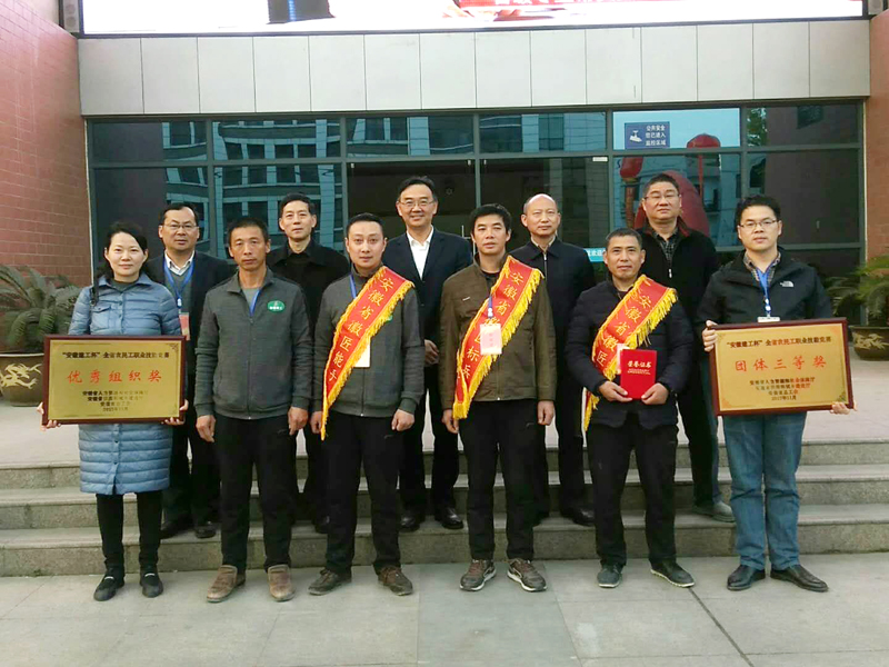 2017年11月25日,由安徽省人力資源和社會(huì )保障廳、安徽省住房和城鄉建設廳、安徽省總工會(huì )聯(lián)合舉辦,安徽建工集團協(xié)辦,安徽建工技師學(xué)院承辦的“安徽建工杯”全省農民工職業(yè)技能競賽在安徽建工技師學(xué)院隆重舉行。來(lái)自全省16個(gè)地市、2個(gè)省直管縣和安徽建工集團組成的19支代表隊共76名選手參加了砌筑工、抹灰工、鑲貼工3個(gè)職業(yè)(工種)的決賽。