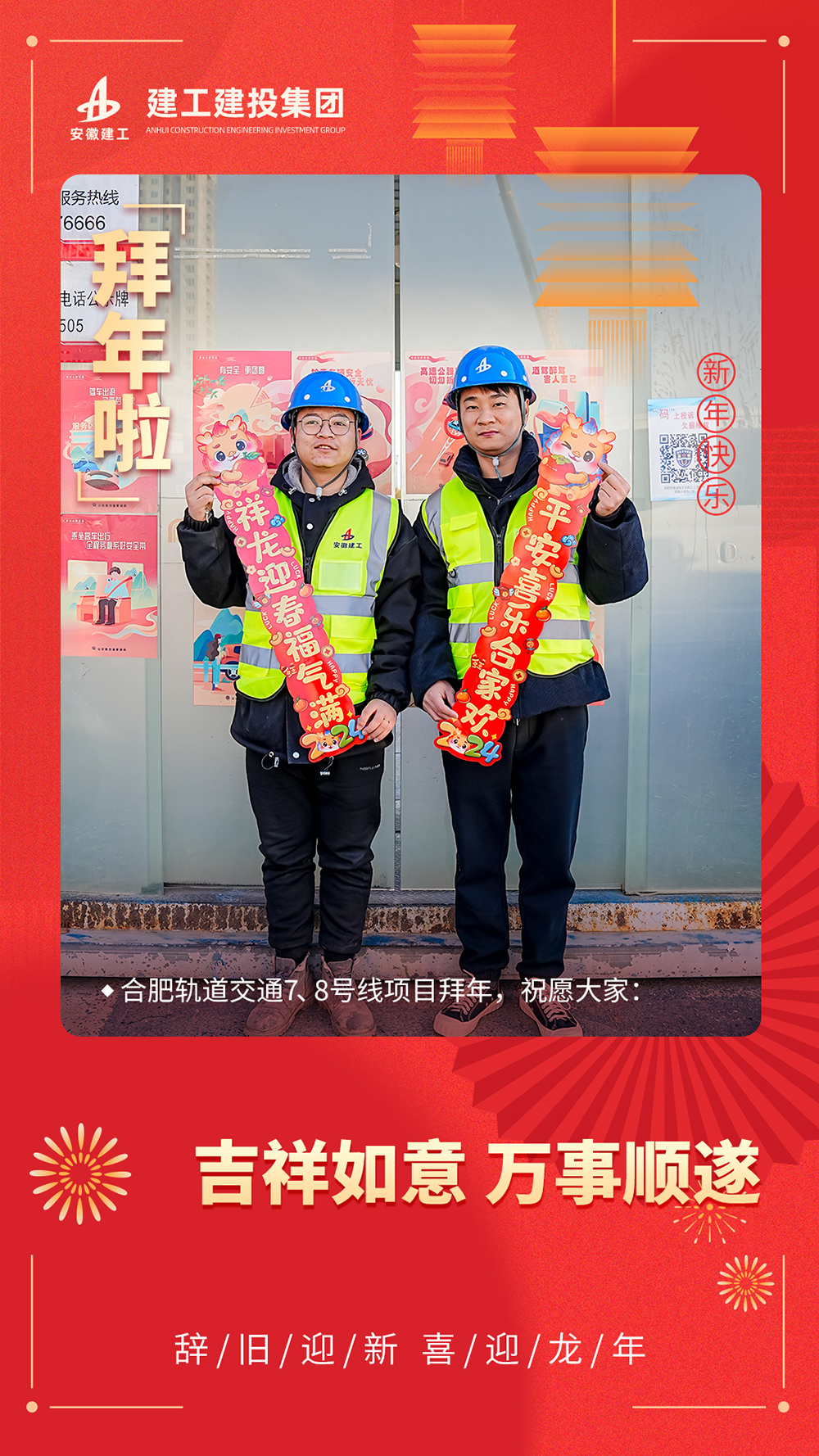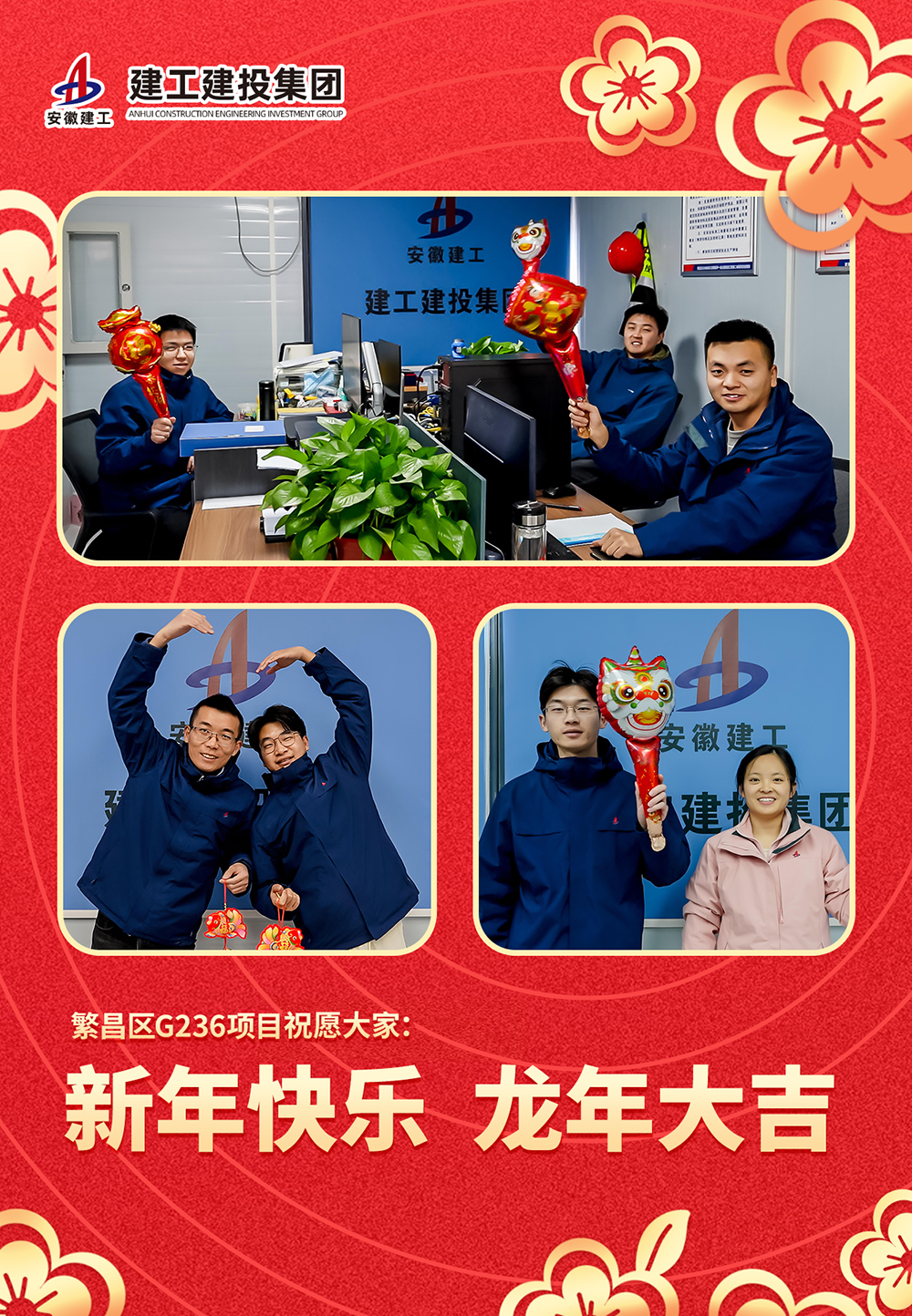 龍騰四海迎新春,鳳舞九天賀佳節,值此新春佳節之際,建工建投三分公司全體員工祝公司創(chuàng )大業(yè)千秋昌盛,展宏圖再就輝煌!祝公司全體同仁一帆風(fēng)順年年好,萬(wàn)事如意步步高。