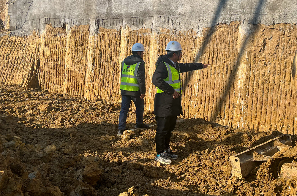 “春節是萬(wàn)家團圓的日子,但是為了保證項目進(jìn)度,達成產(chǎn)值目標,我們項目一線(xiàn)人員有義務(wù)堅守崗位,努力打造合肥租賃保障性住房樣板工程?!笔┕T豐文龍正在進(jìn)行樁間土清理。