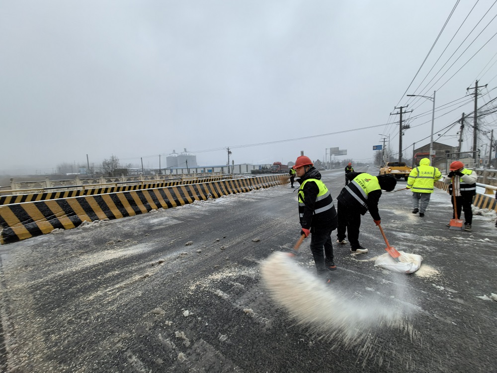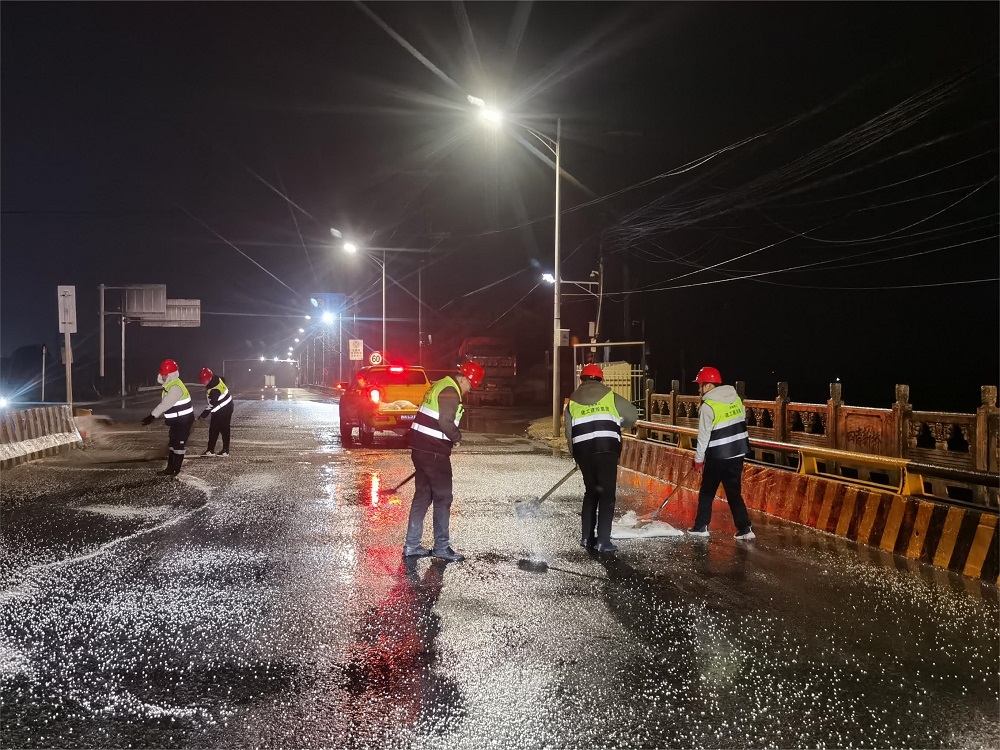 為防止結冰造成道路安全隱患,保障當地居民的正常出行,繁昌區G236項目快速行動(dòng),項目班子率先垂范,統一部署,組織項目管理人員全員參與地方道路的除雪保通行動(dòng)。面對惡劣天氣,大家分工明確、全力以赴,撒融雪劑、掃積雪、鏟冰等,積極投身掃雪除冰行動(dòng)中,趕在22日清晨實(shí)現繁昌區G236項目沿線(xiàn)道路無(wú)明顯積雪和冰凍現象。