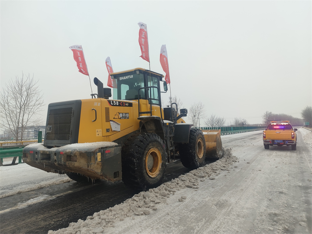 徐淮阜高速宿州段項目及時(shí)響應蕭縣人民政府號召,利用鏟車(chē)、融雪劑、鐵鍬、掃把等工具,重點(diǎn)對縣內非機動(dòng)車(chē)道、坡道、路口等區域不間斷清掃作業(yè),經(jīng)過(guò)幾個(gè)小時(shí)的努力,長(cháng)達2公里的蕭縣龍鳳大道路段積雪清理完畢,及時(shí)恢復了道路暢通,保證群眾出行安全。