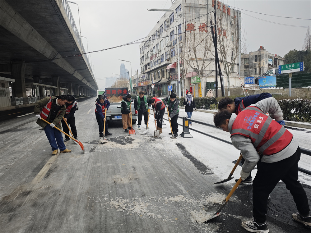 2月23日早,金寨路高架橋綁寬項目迅速響應政府號召,組織10余名管理人員對金寨路地面輔道及高架上匝道開(kāi)展掃雪除冰工作。大家不畏嚴寒、分工明確、相互配合、揮鍬鏟雪,干得熱火朝天。經(jīng)過(guò)齊心協(xié)力的奮戰,冰凍的路面和積雪得到了及時(shí)清理,有效保證道路的安全通暢,減少出行安全隱患。