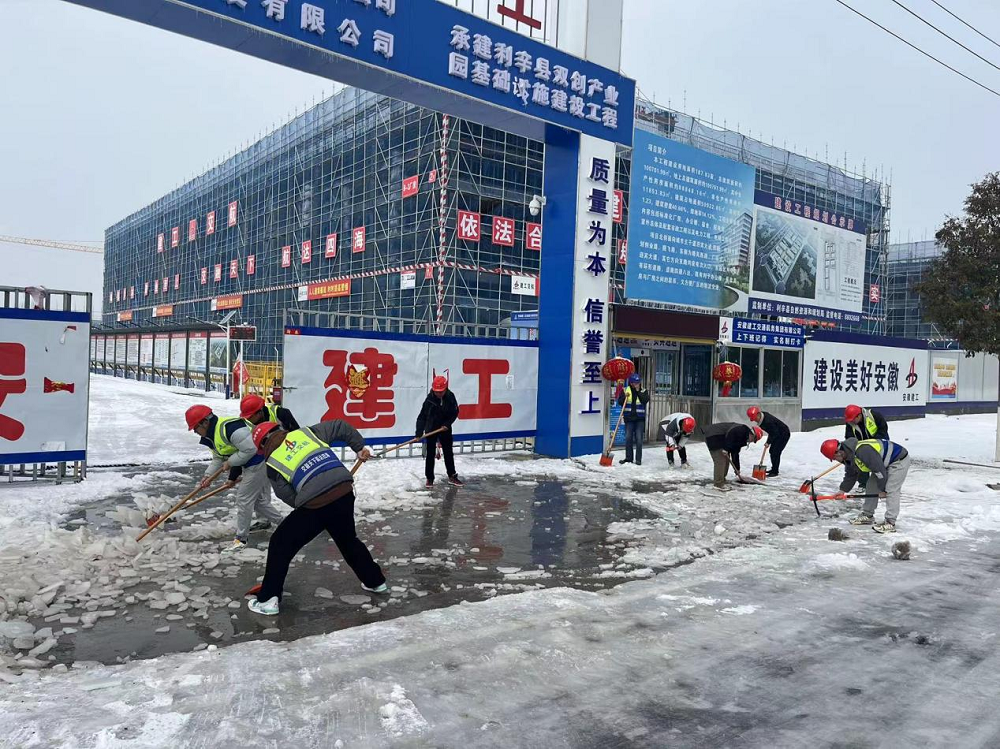 近日,受強冷空氣影響,利辛縣迎來(lái)大范圍嚴寒強降雪和低溫冰凍天氣。利辛縣雙創(chuàng )產(chǎn)業(yè)園項目部以雪為令,組織動(dòng)員全體職工迅速集結,組建黨員先鋒隊和青年突擊隊,為工區和附近道路掃雪除冰,為項目安全施工生產(chǎn)保駕護航。