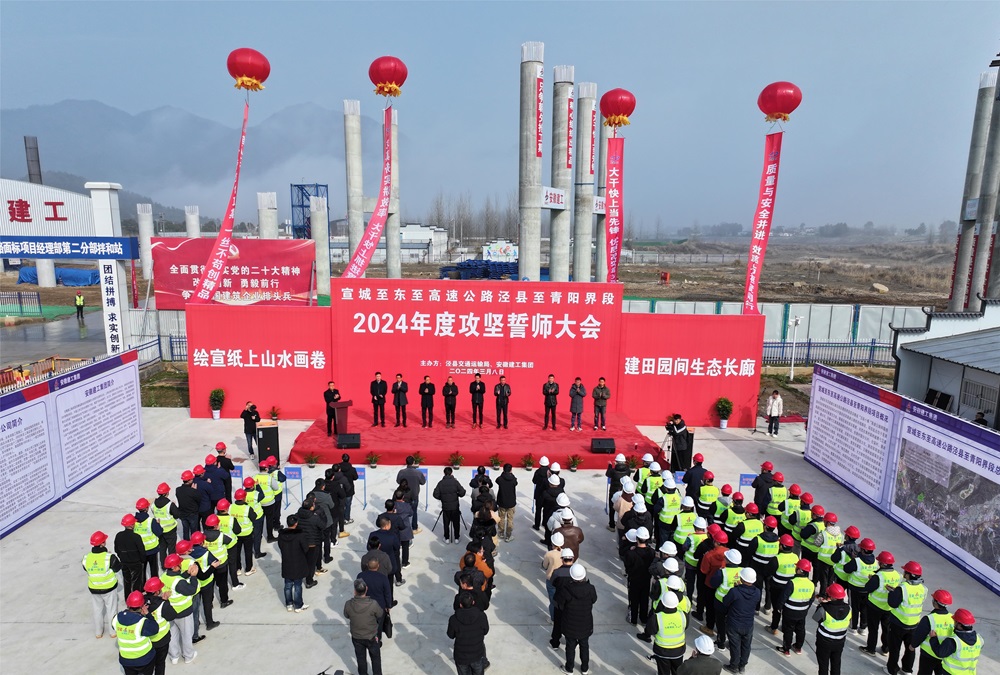 涇縣縣委常委、副縣長(cháng)胡晨發(fā)表致詞,肯定了涇青高速2023年建設成果,并對2024年大發(fā)展寄予殷切期望。他強調,沿線(xiàn)各鄉鎮要發(fā)揚連續作戰和釘釘子的精神,及時(shí)化解征地拆遷難題,營(yíng)造良好的建設環(huán)境;各桿線(xiàn)單位組織專(zhuān)班開(kāi)展“清零”行動(dòng),爭取在4月底前完成凈地交付工作,為早日實(shí)現涇青高速建成通車(chē)奠定堅實(shí)基礎。