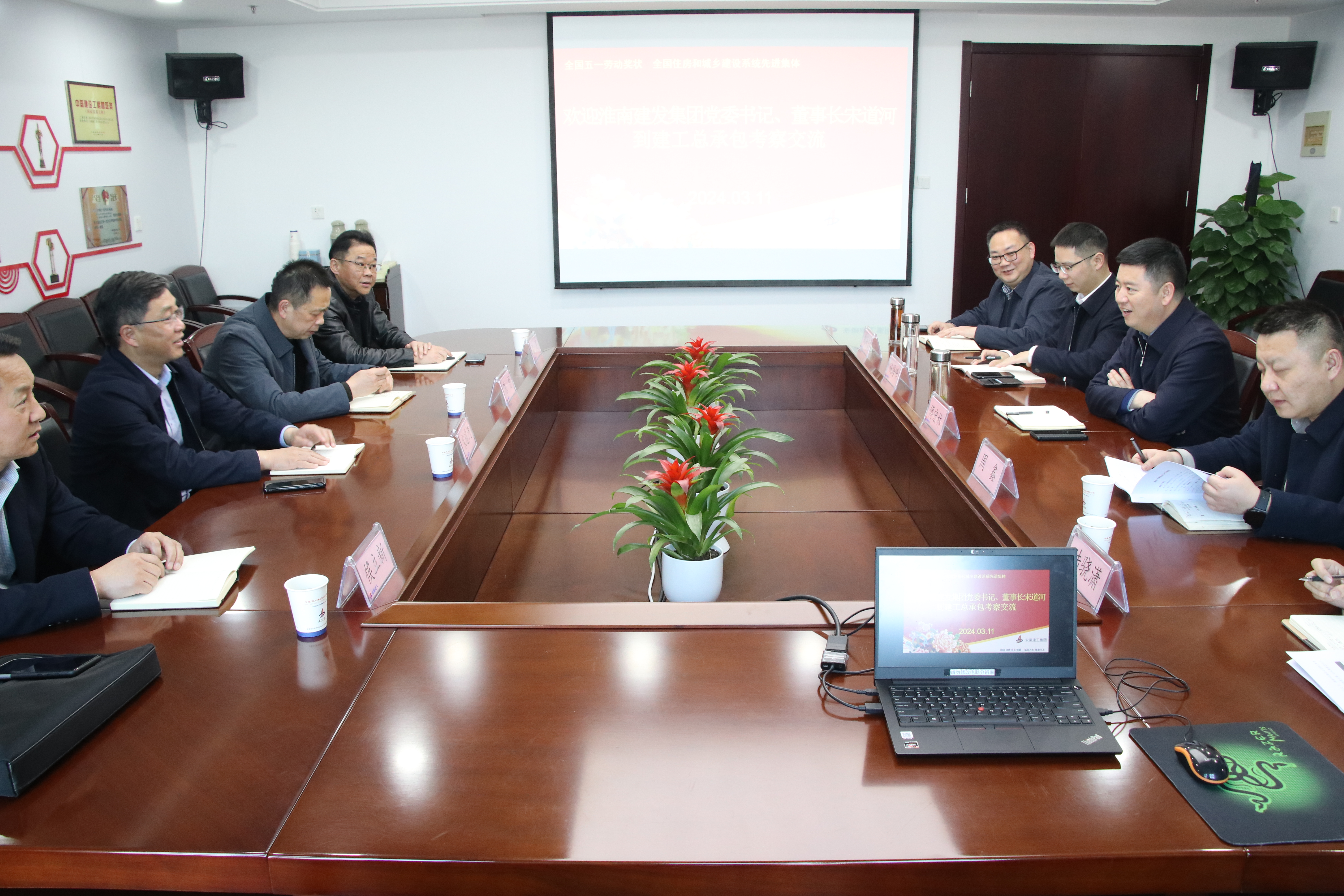3月11日下午,淮南建發(fā)集團黨委書(shū)記、董事長(cháng)宋道河一行到訪(fǎng)建工總承包,公司黨委書(shū)記、總經(jīng)理傅宏林熱情接待,并舉行工作會(huì )談。