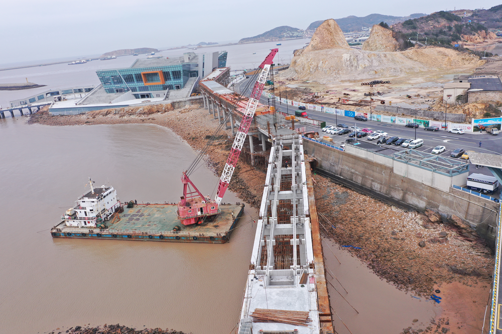 3月13日,隨著(zhù)最后一片預制梁的架設完成,嵊泗旅游交通集散中心廊道工程橋梁部分全線(xiàn)貫通,標志著(zhù)廊道工程正式全面進(jìn)入橋梁上部房建建筑部分的施工。