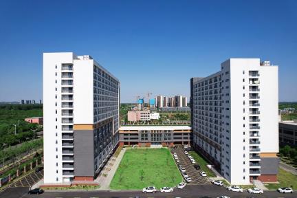 項目位于安徽理工大學(xué)校園內,總建筑面積約4.1萬(wàn)㎡,地上16層,地下一層,分為AB兩棟和連廊,建筑分類(lèi)為二類(lèi)高層公共建筑,地下室耐火等級為一級、地上為二級,屋面防水等級為一級,抗震設防烈度為七度、類(lèi)別為丙類(lèi),使用年限為50年。項目采用新型可調節減震混凝土泵管托座技術(shù),創(chuàng )新性研發(fā)并使用可調節減震設施,最大程度解決傳統泵管托座震動(dòng)對主筋以及混凝土結構的影響,混凝土成型質(zhì)量堅實(shí)美觀(guān)。項目成立“卓越”QC小組,通過(guò)采取對混凝土反坎的精準定位、一體澆筑、一體養護、成品保護等方法,成功解決衛生間墻體滲水問(wèn)題,榮獲安徽省工程建設質(zhì)量管理小組成果二等獎。項目歷時(shí)149天完成主體結構封頂,261天完成所有建設內容,被評為2023年度安徽省“黃山杯”獎。