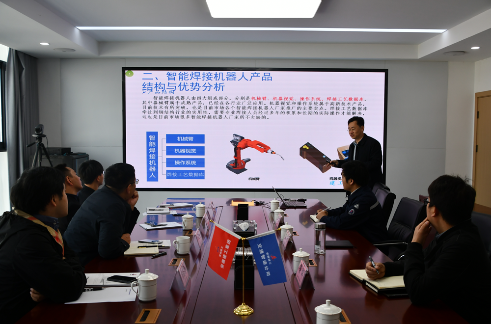 副院長(cháng)劉輝燦一行深入車(chē)間現場(chǎng)參觀(guān)考察了機器人焊接系統設備、U肋埋弧外焊設備、U肋氣保外焊設備和雙機器人系統演示,從技術(shù)層面和實(shí)操層面分別給予了建議指導。