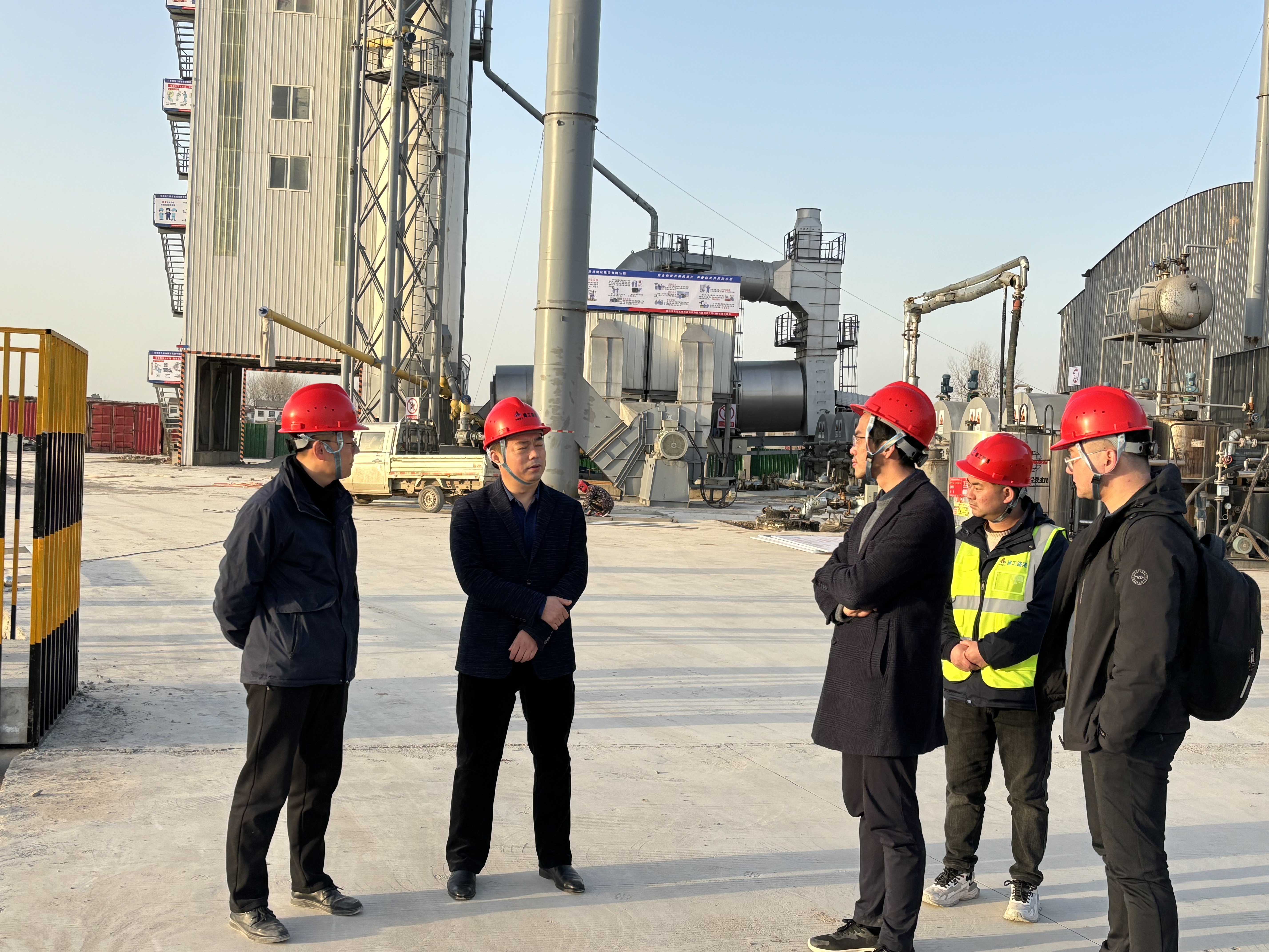 在水穩瀝青拌合站,蘇穎認真聽(tīng)取了相關(guān)負責人對項目概況、場(chǎng)站建設情況、項目總體施工計劃等匯報。