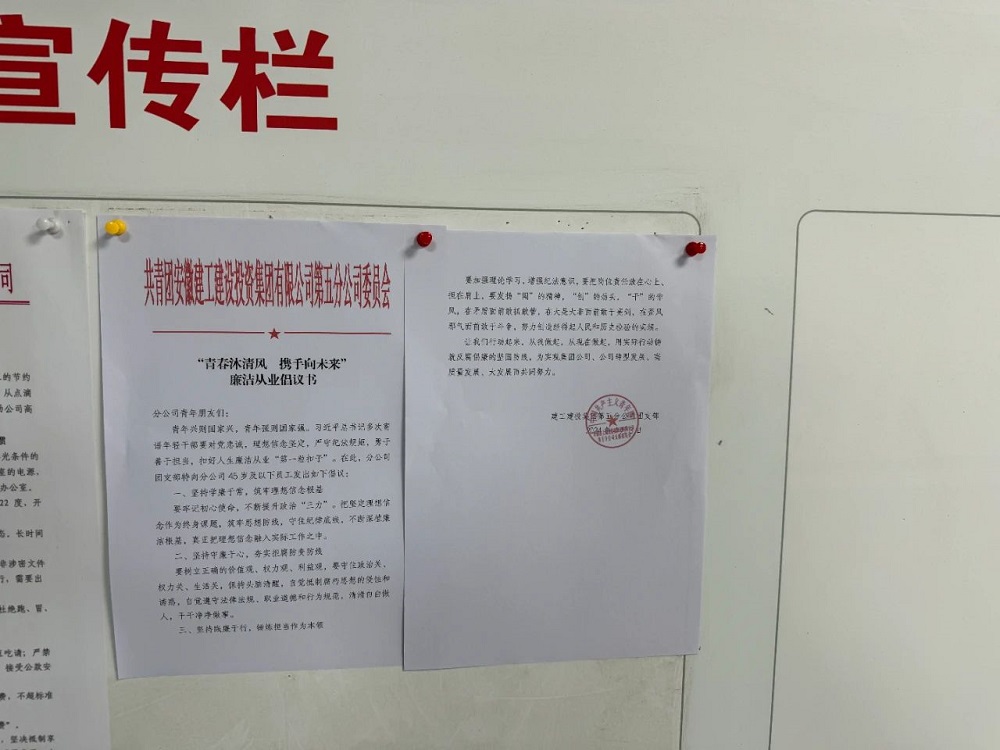 為進(jìn)一步加強廉潔文化教育,分公司團支部發(fā)布“青春沐清風(fēng) 攜手向未來(lái)”廉潔從業(yè)倡議書(shū),鼓勵各項目立足自身,打造多形式、多渠道的廉潔文化宣傳陣地。同時(shí)劃區分片定人送廉潔文化、警示案例到項目部,以案促廉,促使分公司團青受警醒、知敬畏、懂規矩、守紀律、明底線(xiàn)、慎言行、作表率。