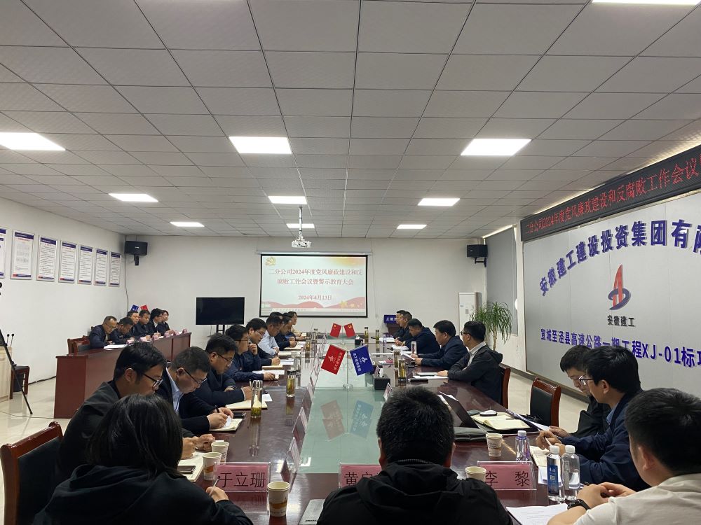 4月13日,二分公司黨總支在宣涇高速01標項目召開(kāi)2024年度黨風(fēng)廉政建設和反腐敗工作會(huì )議暨警示教育大會(huì )。二分公司黨總支書(shū)記、副總經(jīng)理、工會(huì )主席劉峰出席會(huì )議并講話(huà)。二分公司領(lǐng)導班子成員參加會(huì )議。