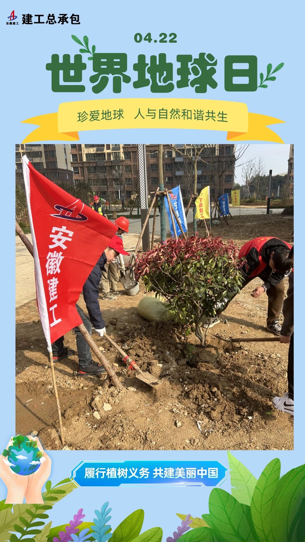 建工總承包所屬單位,組織職工開(kāi)展植樹(shù)保綠主題活動(dòng),以實(shí)際行動(dòng)踐行“綠水青山就是金山銀山”的發(fā)展理念,為建設美麗中國貢獻建工青年力量。