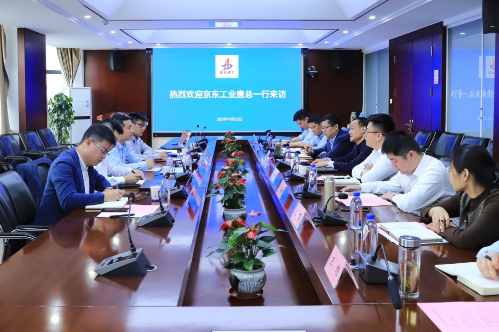 京東工業(yè)安徽區域總經(jīng)理丁焰,公司黨委副書(shū)記、總經(jīng)理陶良敬、副總經(jīng)理朱敏,以及雙方相關(guān)單位和部門(mén)負責人參加會(huì )談。