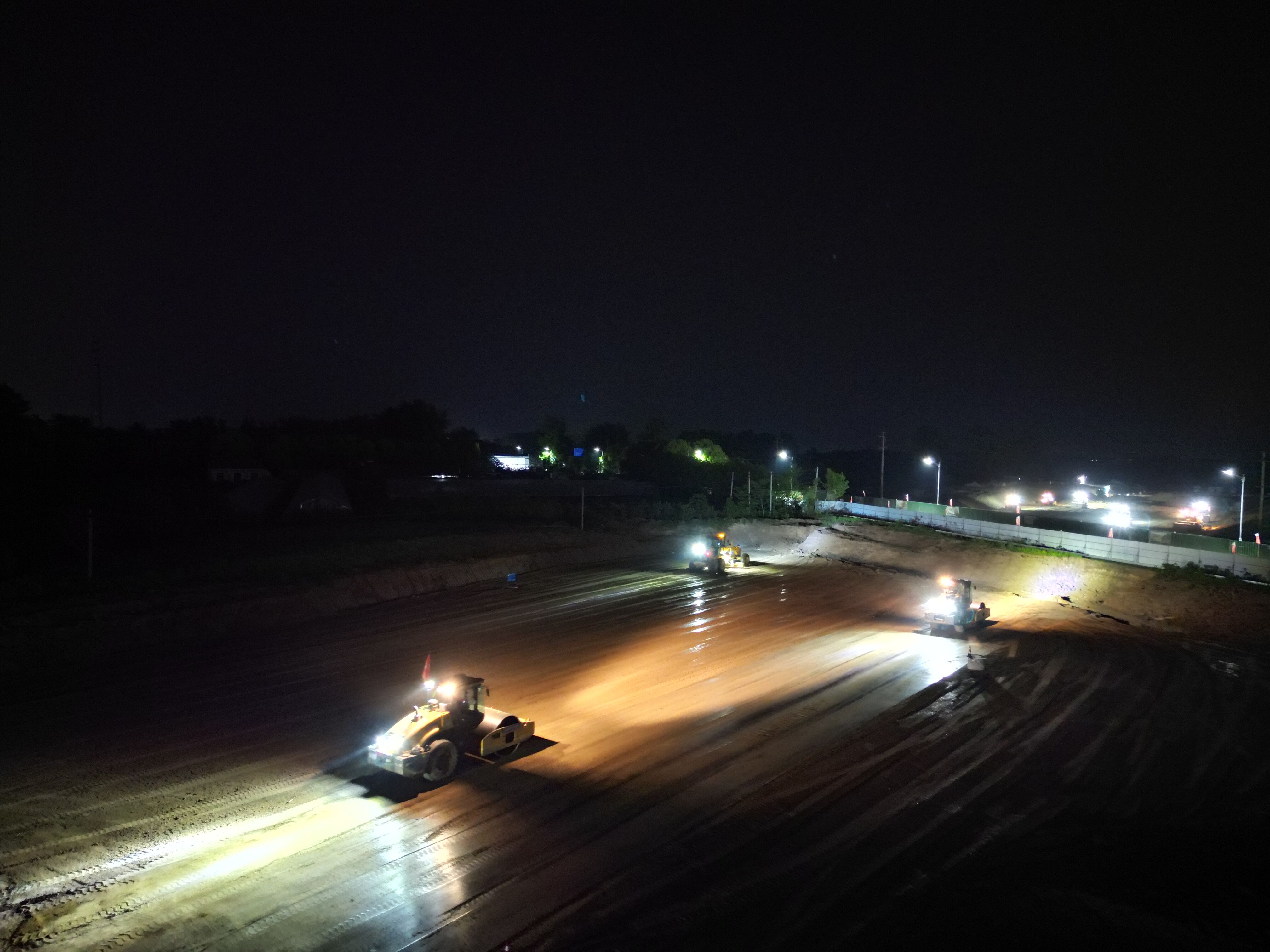 戰鼓催征馬蹄疾,揚帆奮進(jìn)正當時(shí)。4月26日晚,伴隨著(zhù)現場(chǎng)一臺臺機械的轟鳴聲,建工路港長(cháng)豐縣五湖大道項目順利完成K0+110-K0+360路床第一層灰土施工。