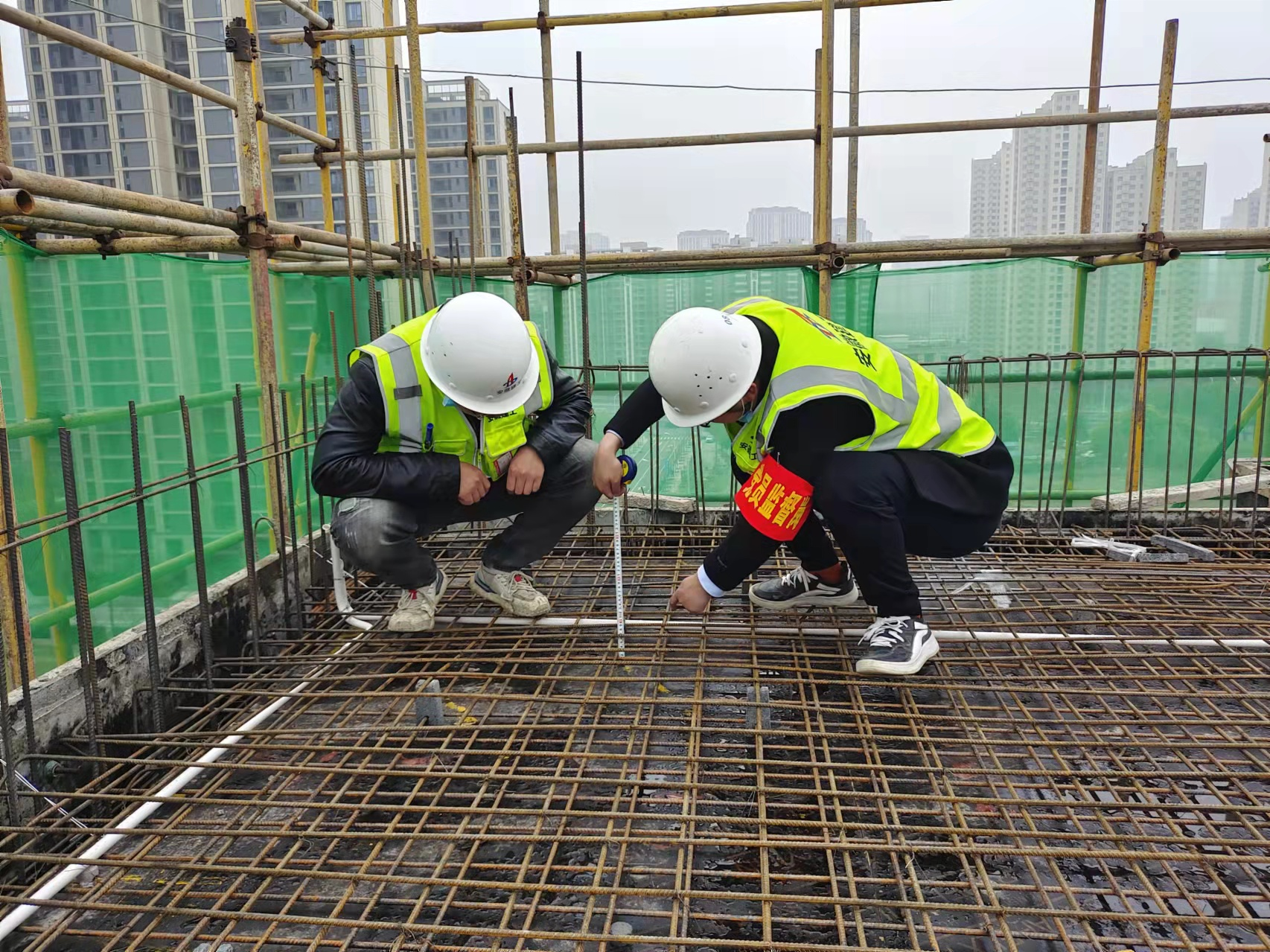 從動(dòng)工伊始,對于項目部來(lái)說(shuō),能不能早日完工,讓居民們安心搬進(jìn)新居,能不能高品質(zhì)把房子建好,讓老百姓住進(jìn)去不煩心,就成了這支年輕團隊自我加壓的重要評判標準。項目全體職工以昂揚的斗志,披星戴月,發(fā)揚“特別能吃苦、特別能戰斗”的優(yōu)良作風(fēng),攻堅克難推進(jìn)建設進(jìn)度?!皠倎?lái)到工地的時(shí)候,了解到復建點(diǎn)的建設牽動(dòng)著(zhù)片區不少住房困難家庭的期待。因此,深感責任在肩,對于我來(lái)說(shuō)沒(méi)有周末,沒(méi)有節假日,就是集中一切力量突擊生產(chǎn)?!表椖拷?jīng)理陳玉壯表示。陳玉壯統攬全局,內抓管理,外部協(xié)調,將自己的全部時(shí)間獻給了項目。2022年,大女兒剛剛滿(mǎn)三周歲,進(jìn)入幼兒園小班,上下學(xué)全部孩子奶奶接送。當年9月份,妻子發(fā)現懷孕,小家庭將迎來(lái)第四位成員,由于工期正緊無(wú)法回家,所有的孕期檢查,全部由妻子挺著(zhù)肚子一個(gè)人去醫院檢查。陳玉壯的身先士卒,感染著(zhù)項目部每一名職工。為了加快工期進(jìn)度,生產(chǎn)經(jīng)理王瀟婚禮過(guò)后,第一時(shí)間趕回工地現場(chǎng);成本核算員程永剛的孩子即將出生,無(wú)法陪伴妻兒,唯有將這份牽掛和思念投入到工作中去……