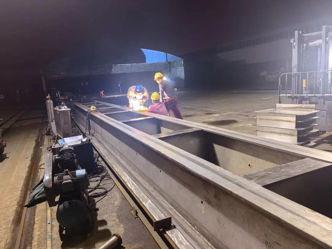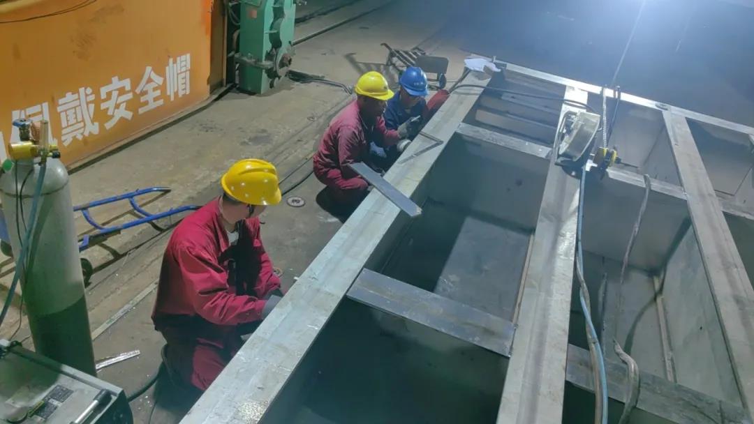 5月7日晚,安徽水利金結機電分公司生產(chǎn)車(chē)間燈火通明,閘門(mén)焊接的火花、機器切割的轟鳴應接不暇,歷時(shí)近3個(gè)月自主加工制造的國內最大的純不銹鋼閘門(mén)——老蕪湖海關(guān)段防洪墻通閘不銹鋼擋水工作閘門(mén)順利拼裝完成,為后續現場(chǎng)閘門(mén)安裝工作奠定堅實(shí)基礎。