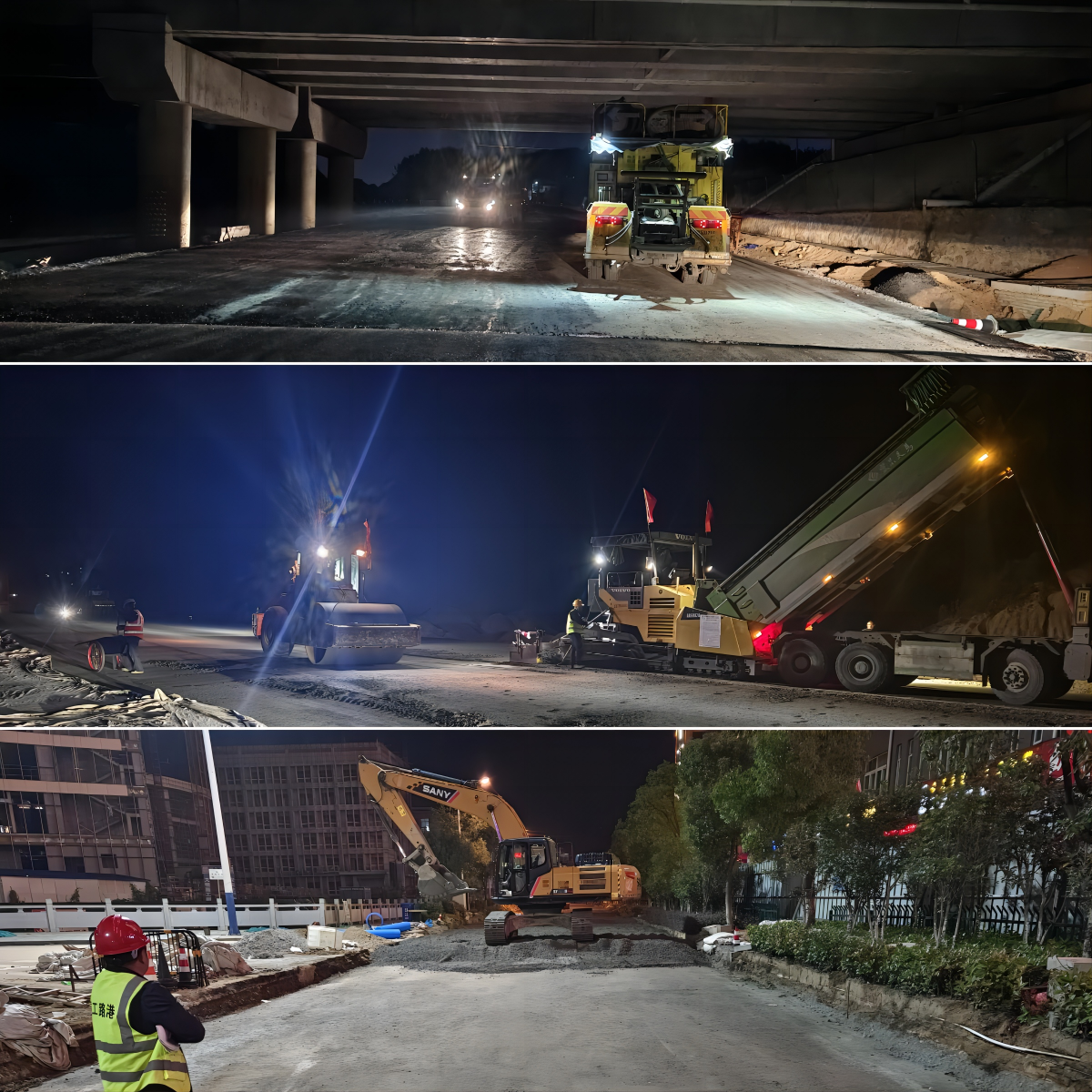夜晚十點(diǎn)的岳西縣城區基礎設施建設項目施工現場(chǎng),數臺挖掘機正揮動(dòng)巨臂卸載沙土,渣土車(chē)有序地來(lái)回穿梭。汛期將至,為保障工期計劃能按時(shí)完成,岳西縣城區基礎設施建設項目部全體成員開(kāi)啟“5+2”“白+黑”工作模式,結合勞動(dòng)競賽活動(dòng),日夜奮戰。截至目前,建設路樁基施工、資福大道全線(xiàn)水穩、中面層、下面層瀝青施工已全部完成,主路具備通車(chē)條件,主路水穩已全部完成。
