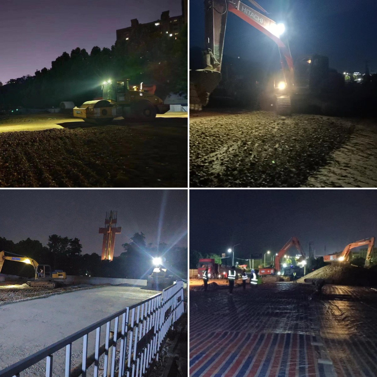 龍眠新橋項目正在掀起勞動(dòng)競賽活動(dòng)熱潮,利用晴好天氣,夜間加班加點(diǎn)組織道排施工,鉚足干勁趕進(jìn)度,在確保質(zhì)量和安全的前提下,爭分奪秒拼工期。目前道路主線(xiàn)碎石土施工完成65%,匝道擋墻施工完成60%,雨水管道施工完成40%,污水管道施工完成40%。