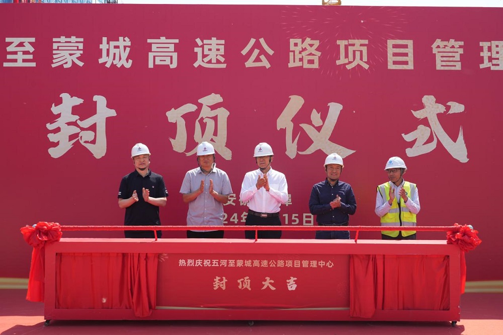 5月15日上午,建工交航五河至蒙城高速公路房建工程施工FJ-01標主體結構順利封頂,標志著(zhù)五蒙高速房建一標施工取得階段性勝利。蚌埠城市投資控股有限公司總經(jīng)理、安徽省五蒙高速公路開(kāi)發(fā)有限公司董事長(cháng)馬傳磊,安徽省交通規劃設計研究總院股份有限公司建筑設計院副院長(cháng)李多國,安徽省志成建設工程咨詢(xún)股份有限公司監理單位副總經(jīng)理張維民,安徽建工交通航務(wù)集團有限公司副總經(jīng)理吳繼成等領(lǐng)導出席封頂儀式。