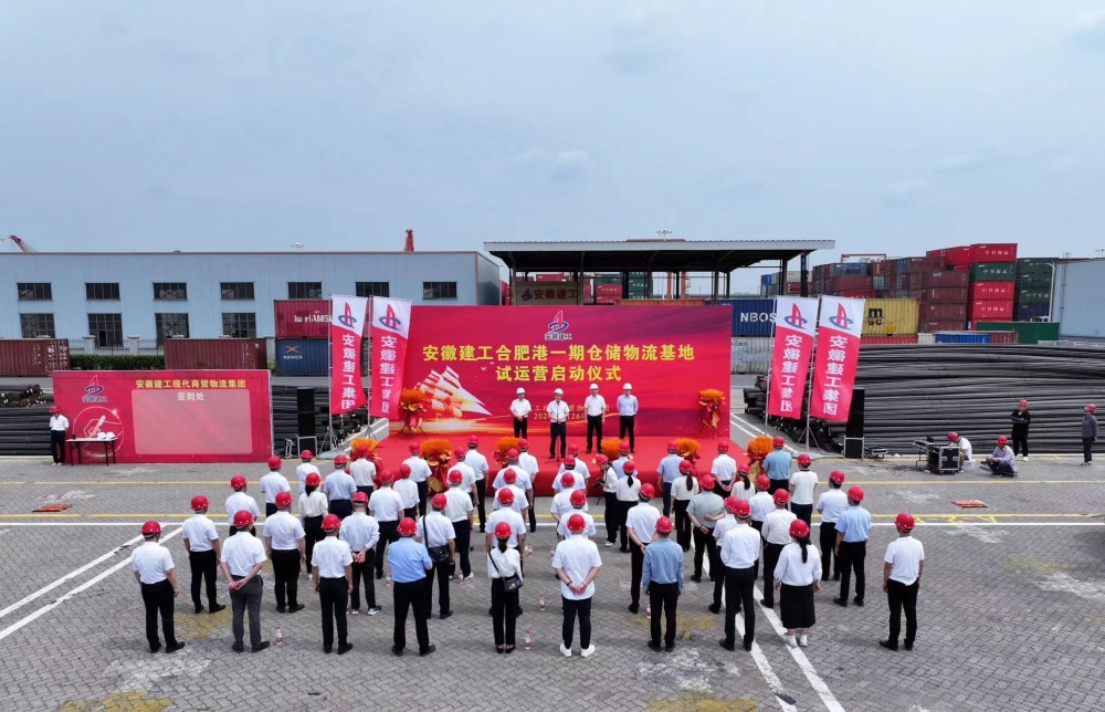 5月26日周日上午,建工商貿物流在合肥港一期舉行安徽建工集團首個(gè)倉儲物流基地試運營(yíng)啟動(dòng)儀式。建工股份副總經(jīng)理、公司黨委書(shū)記、董事長(cháng)張沖講話(huà)并宣布試運營(yíng)。