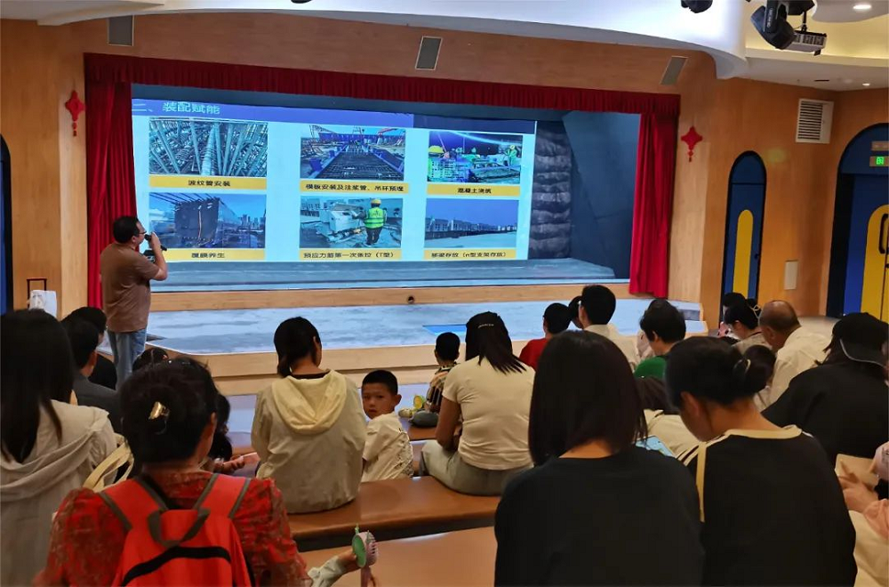 項目技術(shù)負責人以“守正創(chuàng )新 裝配賦能”為主題,從橋的概念入手,介紹了中國古代橋梁形式、現存的橋梁瑰寶以及近現代橋梁材料、結構研究、施工工藝的進(jìn)步歷程。同時(shí)結合裝配式新技術(shù)在皖西大道橋、迎賓大道橋等橋梁施工建設中的應用進(jìn)行詳細講解,讓大家真切感受到交通建設科技的魅力。