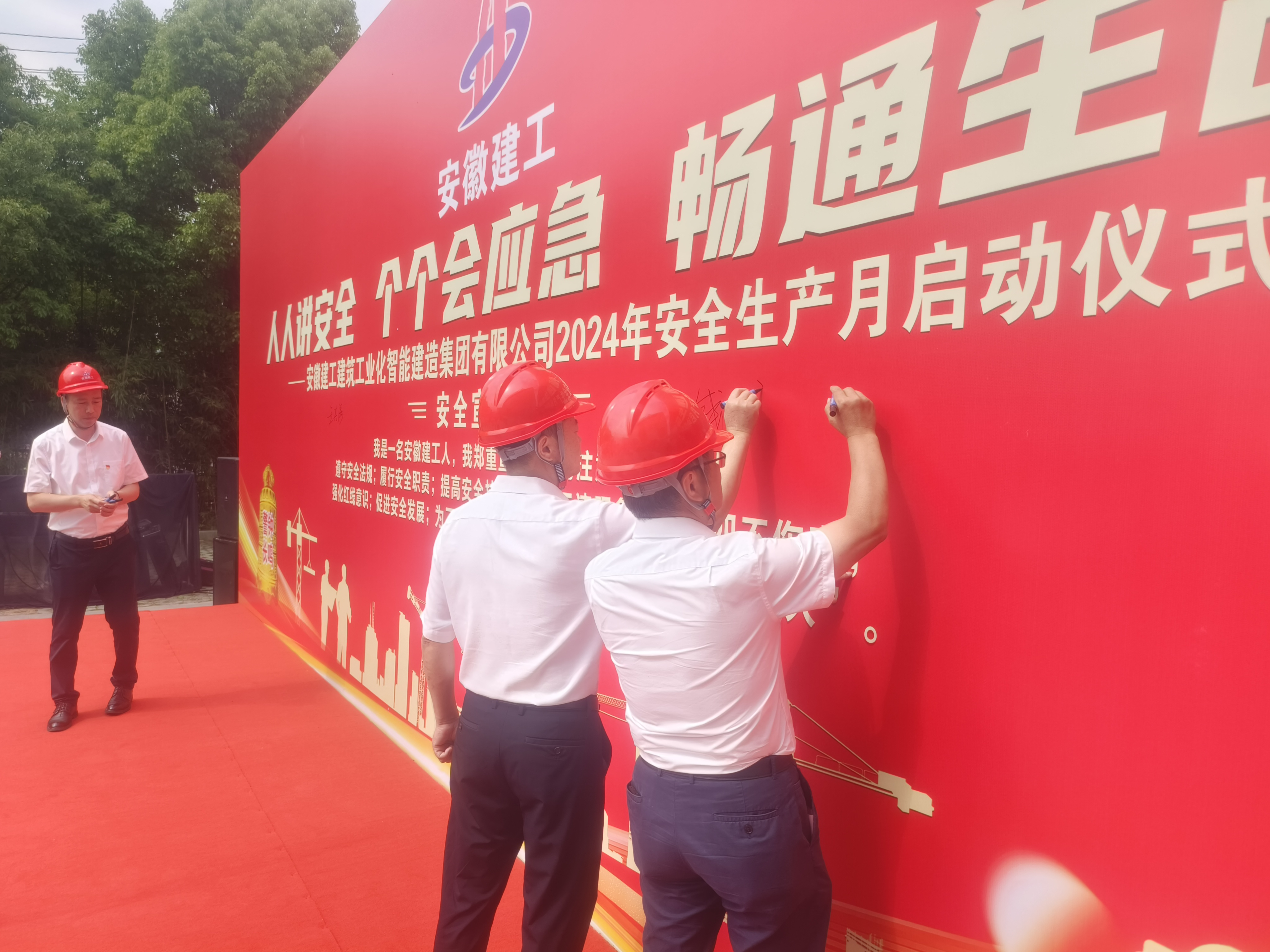 為了深入貫徹習近平總書(shū)記關(guān)于安全生產(chǎn)的重要論述,根據安徽建工集團關(guān)于開(kāi)展“安全生產(chǎn)月”活動(dòng)的通知要求,安徽建工建筑工業(yè)化智能建造集團于2024年6月4日召開(kāi)“安全生產(chǎn)月”活動(dòng)啟動(dòng)儀式暨安全承諾簽字儀式,公司黨委副書(shū)記、總經(jīng)理錢(qián)玉寶、黨委委員、總工程師王興明、黨委委員、副總經(jīng)理金其濤出席儀式。