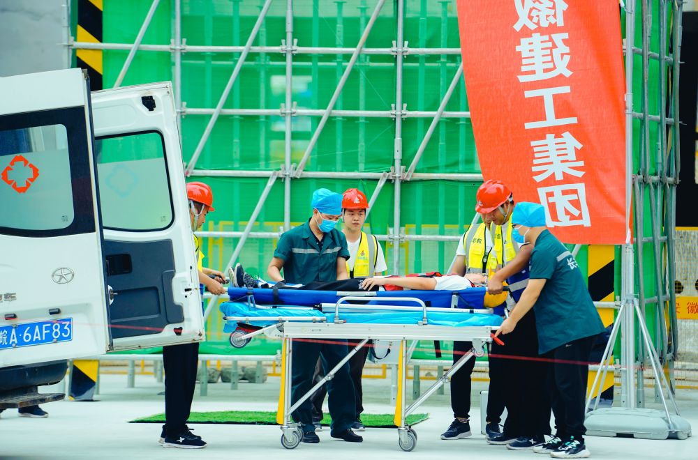 “安全生產(chǎn)月”正式宣布啟動(dòng)后,現場(chǎng)開(kāi)展高處墜落及消防應急救援演練活動(dòng),演練以應急救援、醫療救護、警戒保衛、后勤保障等場(chǎng)景進(jìn)行,各小組分工明確、協(xié)同作戰,圓滿(mǎn)完成演練預定任務(wù)。期間,與會(huì )人員實(shí)地觀(guān)摩項目安全體驗區、現場(chǎng)質(zhì)量樣板區及實(shí)體樣板展示區。