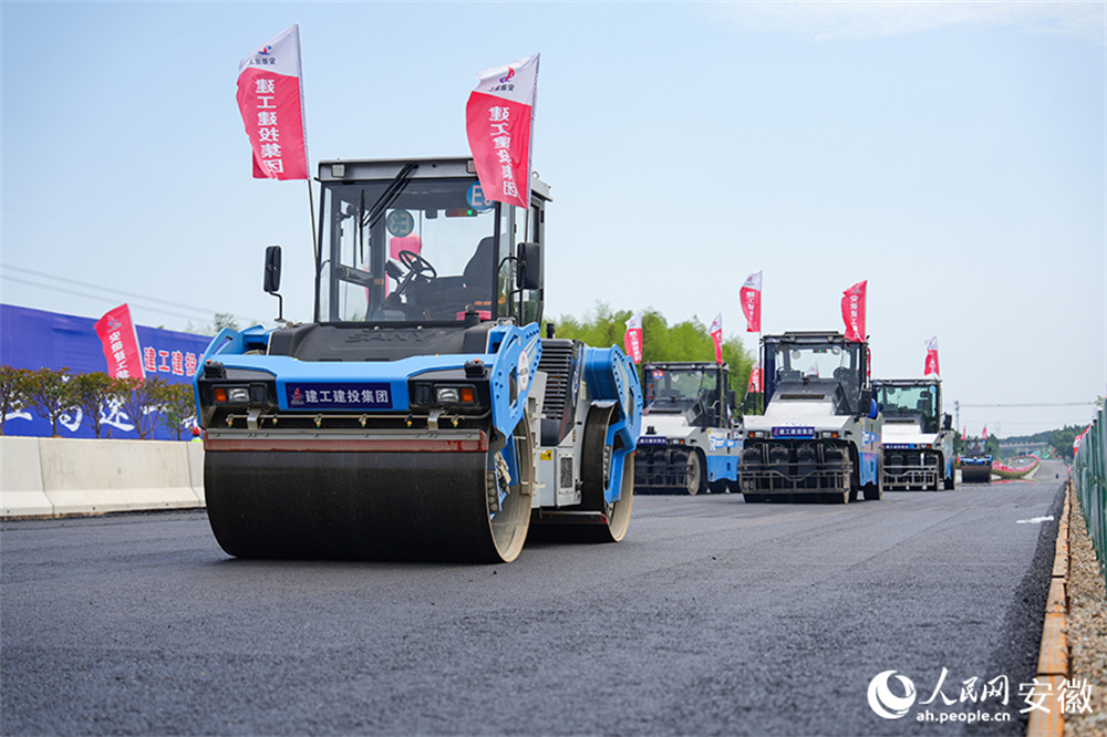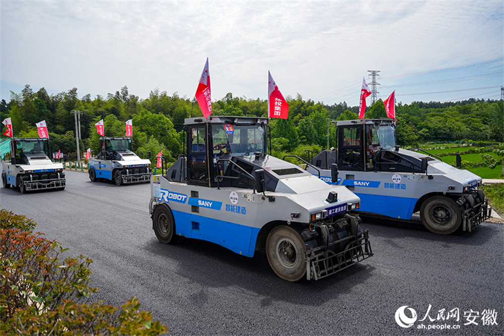 人民網(wǎng)宣城6月6日電(記者苗子?。?月3日,在宣涇高速一期01標項目現場(chǎng),1臺大型攤鋪機和6臺壓路機在沒(méi)有駕駛員的情況下,通過(guò)集群化協(xié)同作業(yè)的方式,精準完成了瀝青面層攤鋪、碾壓工作。這也是安徽高速公路項目首次運用“無(wú)人攤壓機群施工”這種智能化的方式進(jìn)行作業(yè)。