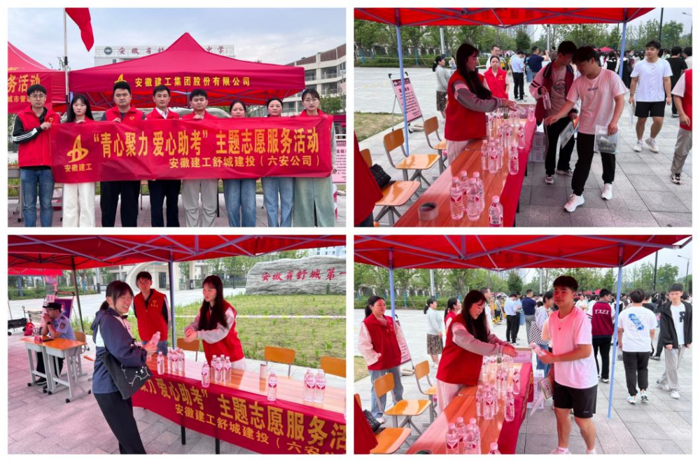 舒城建投(六安公司)團支部開(kāi)展“青心聚力 愛(ài)心助考”主題活動(dòng),組織9名青年志愿者到舒城一中考場(chǎng)搭設愛(ài)心帳篷,為考生送去礦泉水、墊板、黑筆、2B鉛筆、橡皮等助考包,用實(shí)際行動(dòng)踐行我為群眾辦實(shí)事的青年擔當。